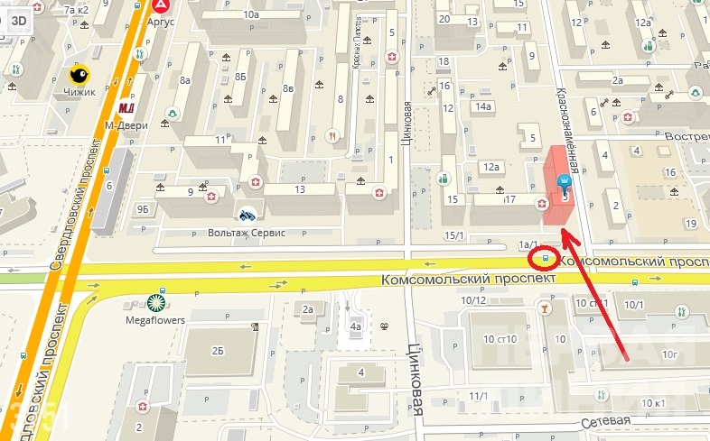 Находится у остановки общественного транспорта с интенсивным пешеходным и авто трафиком.
