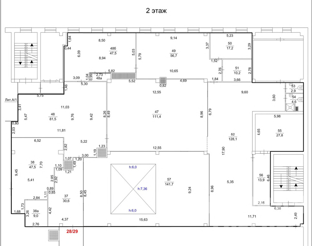 Помещение большой площади (S=733 м2) на первой линии жилого комплекса "Западный луч"