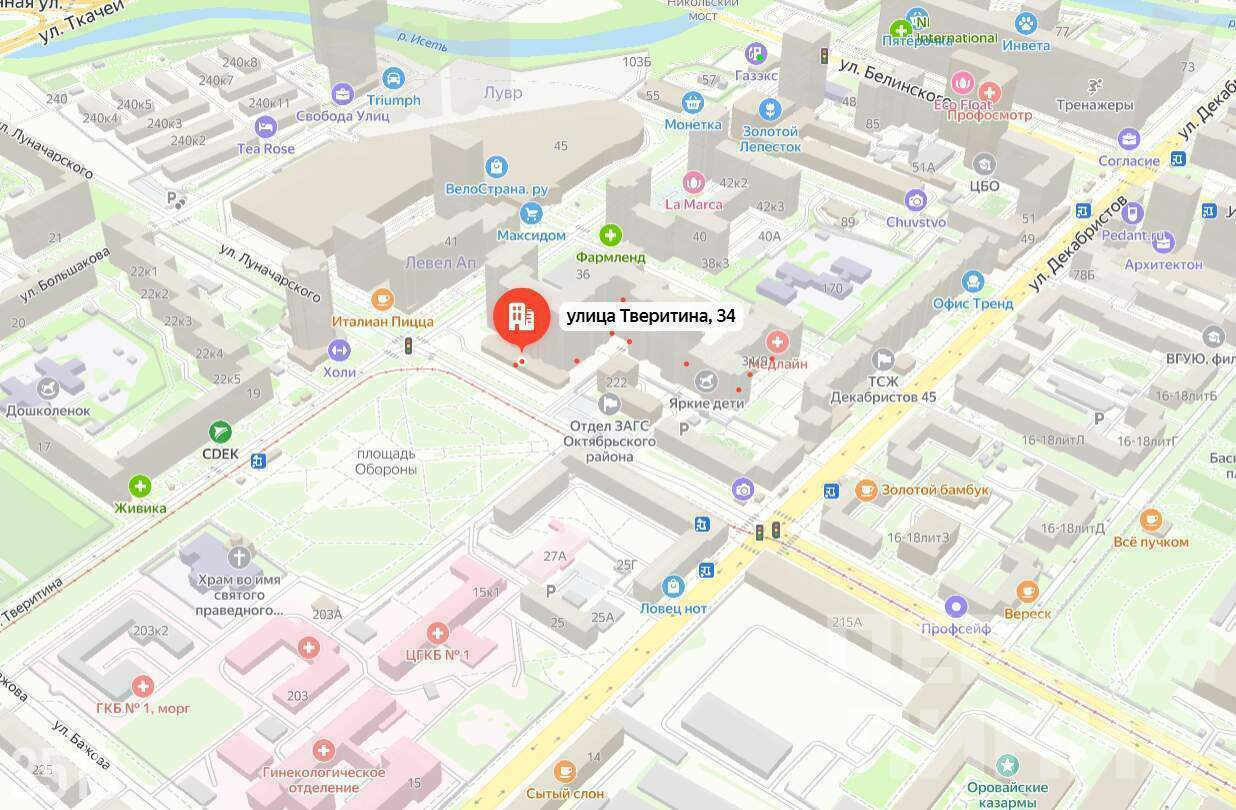 - Объект находится на первой линии перекрестка Тверитина и Луначарского